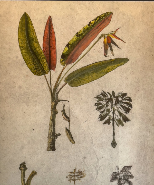 Impressão sobre papel de algodão e aquarelapigmentada de dourado